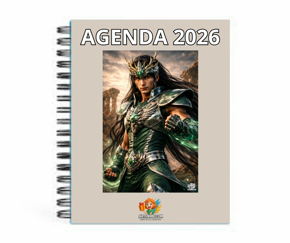 La Agenda 2026 de Artenime presenta una ilustración exclusiva inspirada en el legendario caballero del dragon, reinterpretado con un estilo anime realista, poderoso y lleno de dramatismo.