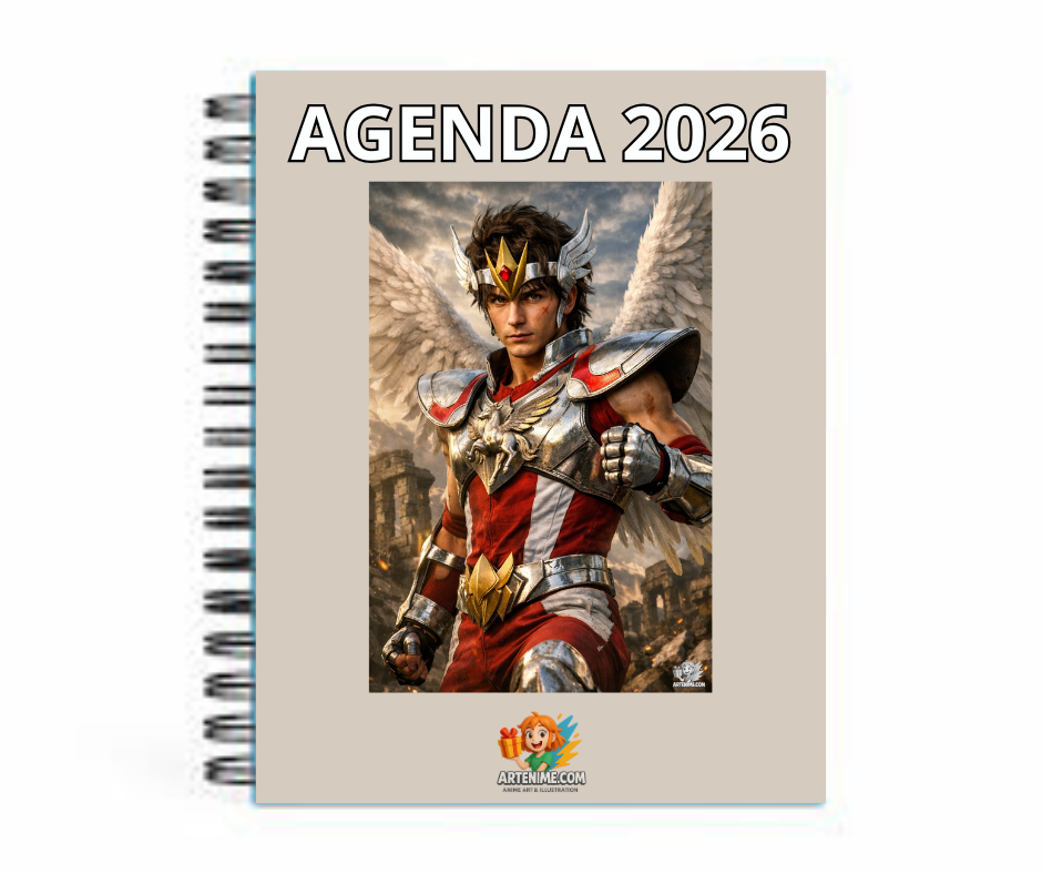 La Agenda 2026 de Artenime presenta una ilustración exclusiva inspirada en el legendario caballero de pegaso, reinterpretado con un estilo anime realista, poderoso y lleno de dramatismo.