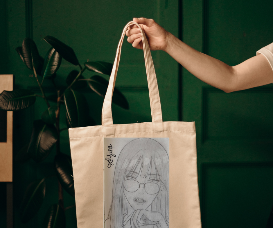 Bolsa de tela reutilizable con la ilustración original impresa. Práctica, ecológica y con un diseño artístico que convierte un objeto cotidiano en una pieza creativa.