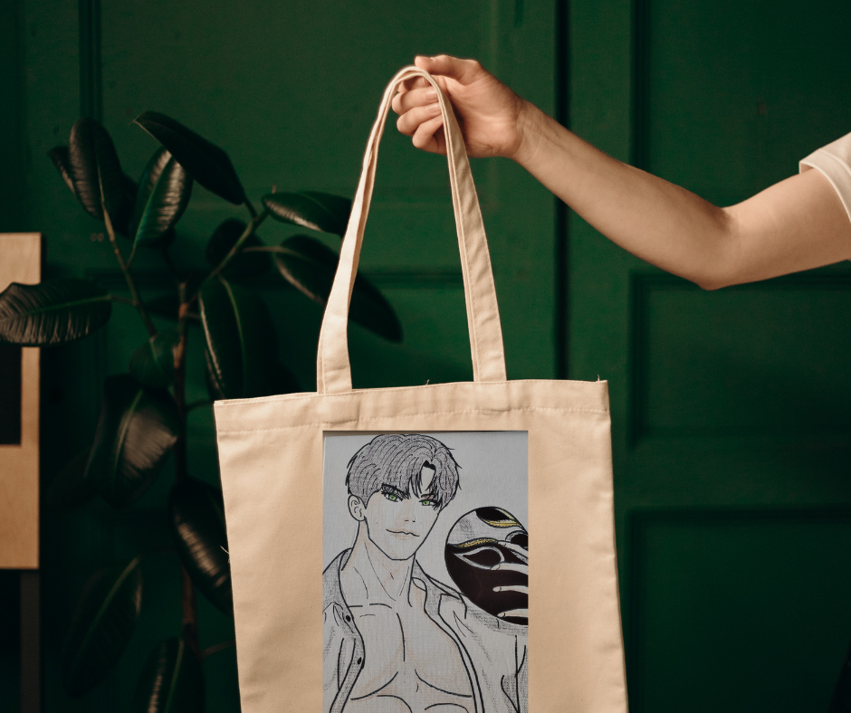 Bolsa de tela reutilizable con ilustración anime a lápiz, una opción práctica y artística para el día a día. Combina funcionalidad y arte en un diseño ligero, resistente y con personalidad.