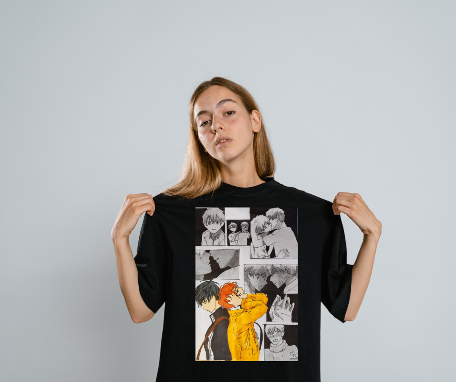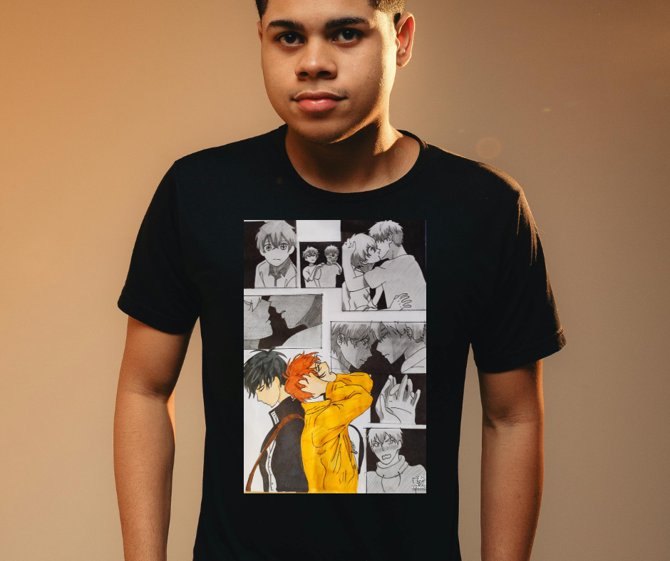 Nuestra camiseta anime manga romántico combina moda urbana y arte japonés en una prenda única.