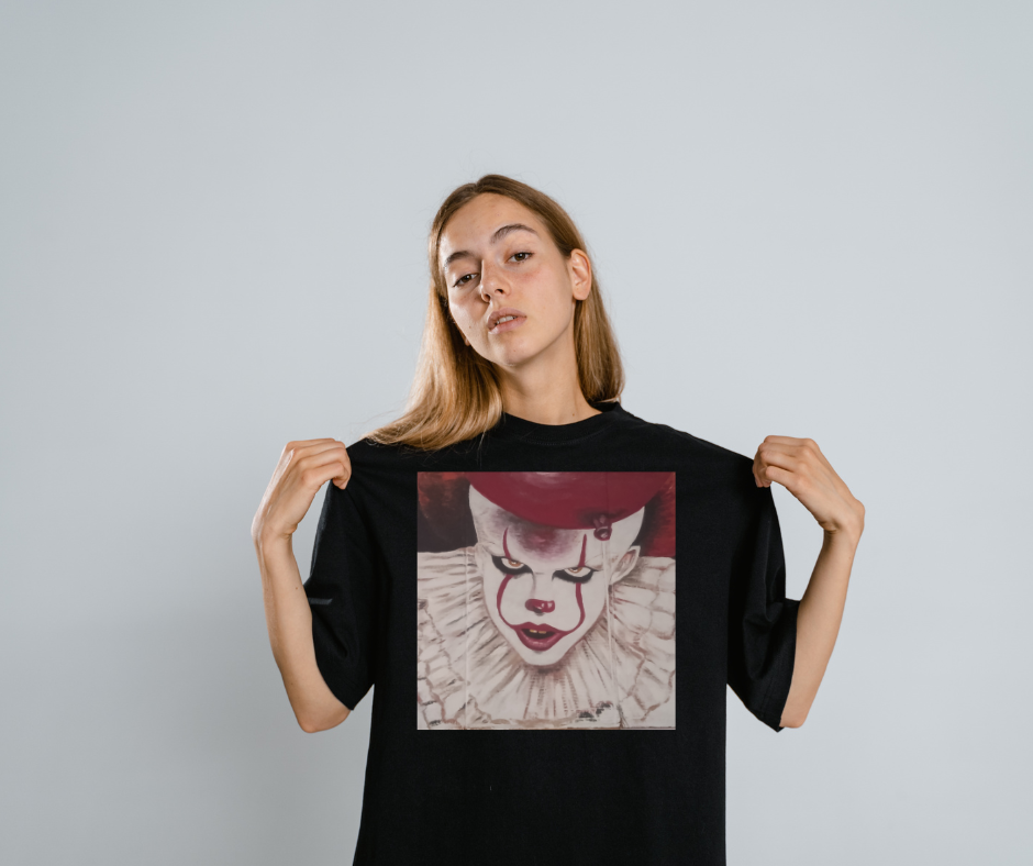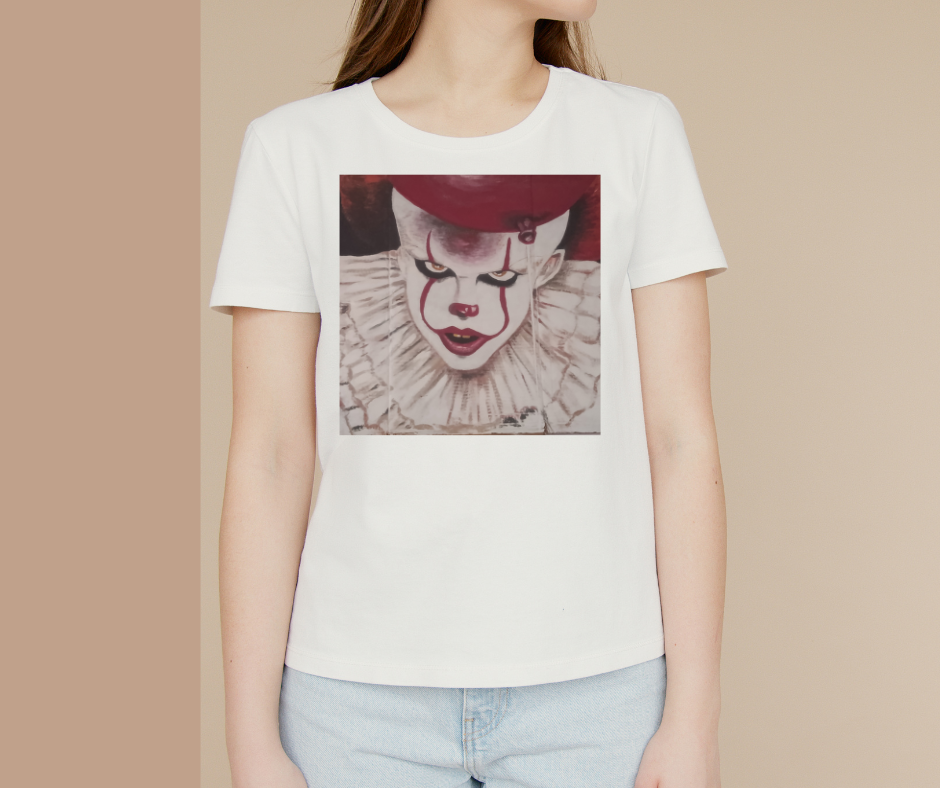 Camiseta de algodon con ilustracion de un cuadro del pesonaje de it (Pennywise).