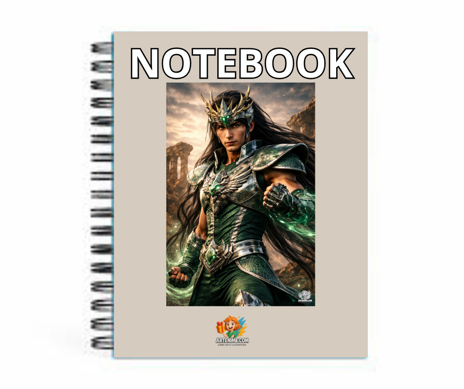 Este notebook exclusivo de Artenime presenta una ilustración inspirada en el caballero del Dragon, reinterpretado con un estilo anime realista y una estética poderosa.