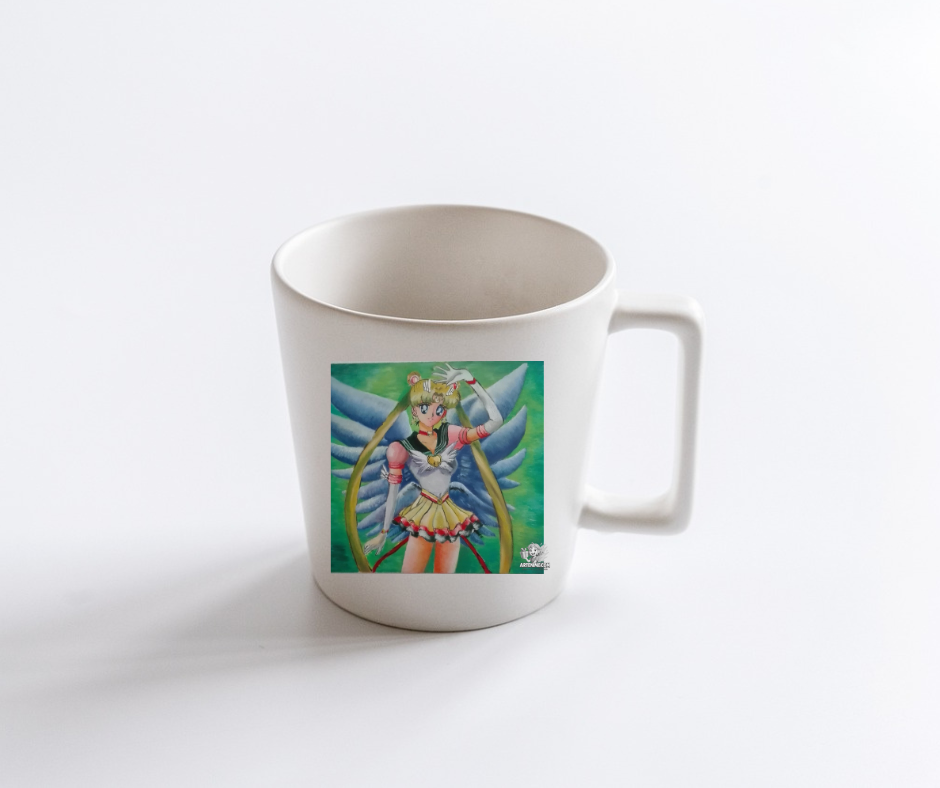 Taza para el desayuno con ilustracion de un cuadro del pesonaje de Sailor Moon.